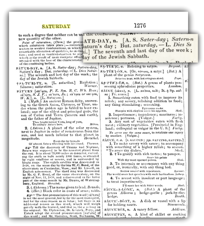 “Saturday: The seventh and last day of the week; the day of Jewish Sabbath“