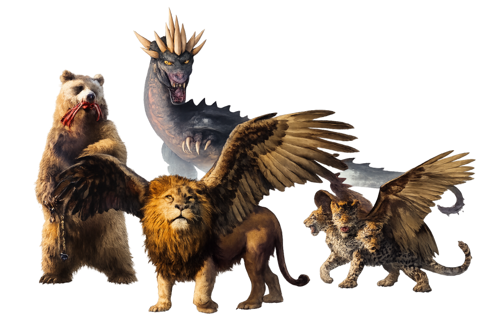 The first was like a lion and had eagle’s wings… And behold, another beast, a second one, like a bear. It was raised up on one side, and it had three ribs in its mouth between its teeth… After this I looked, and behold, another, like a leopard, which had four wings of a bird on its back. The beast also had four heads, and dominion was given to it.” —Daniel 7:4–6