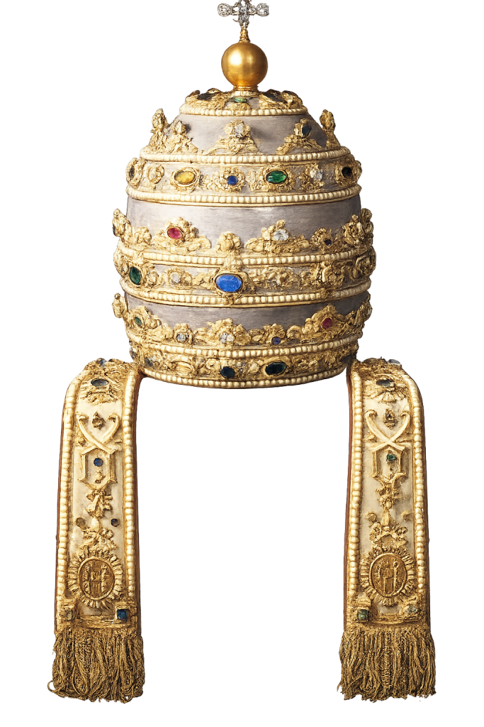 The popes have also used something called the “papal tiara,” which consists of three crowns. Let us allow them to explain the meaning of its symbolism themselves:
